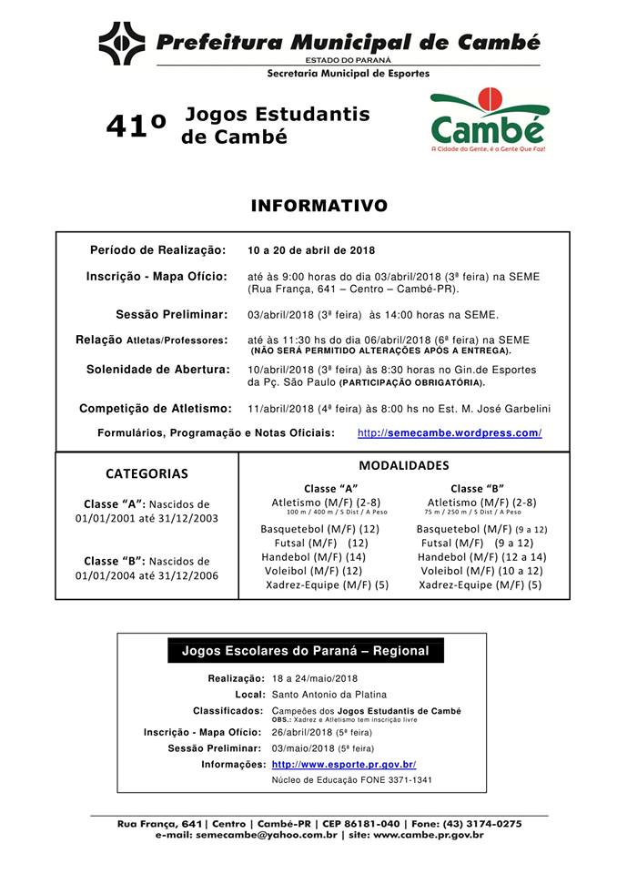 JOGOS ESTUDANTIS DE CAMBÉ