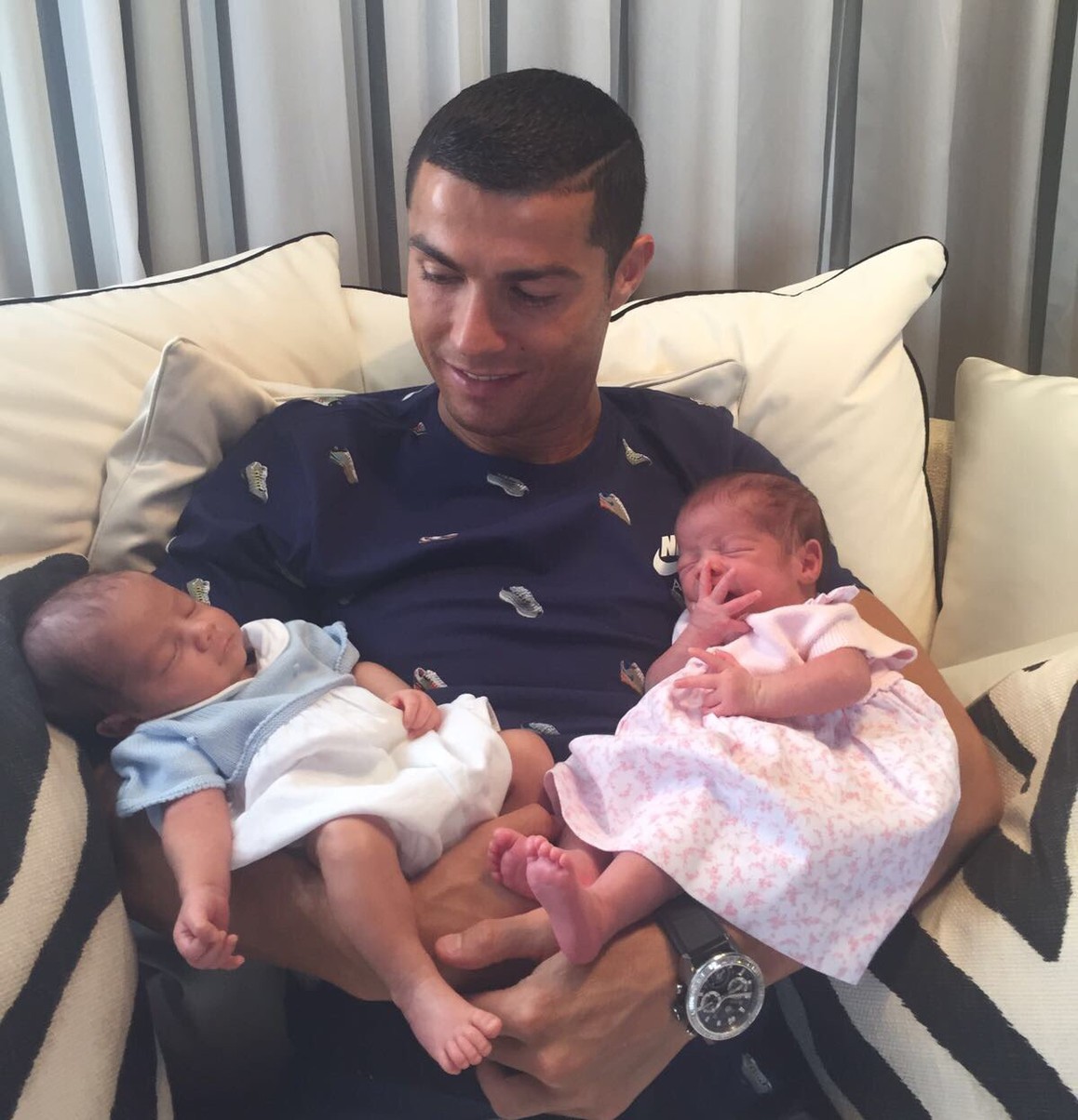 Cristiano Ronaldo posa com filhos gêmeos: "Novos amores da minha vida"