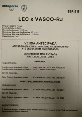 PREÇOS DOS INGRESSOS PARA 3ª FEIRA